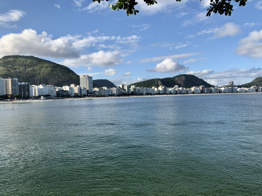 ブラジル リオデジャネイロにて。 対岸より、コパカパーナ・ビーチをのぞむ。 ボサノヴァの名曲「イパネマの娘」の由来になったイパネマ海岸も見える。